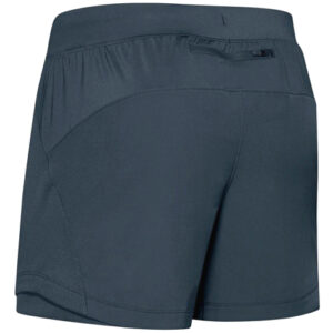 Sport shorts. Knee-length. Elasticated waistband. 2 side pockets and one back patched pocket. Bottom hem with double top stitching. Side seams.