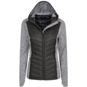 ?Fitted jacket. Full-zip through style. Stand-up collar and zip guard. Horizontal line quilted with artificial down. Two zipped side pockets with zip guards. Jacket can be rolled up and contained within the accompanying self fabric stuff bag. Easy re-label system.